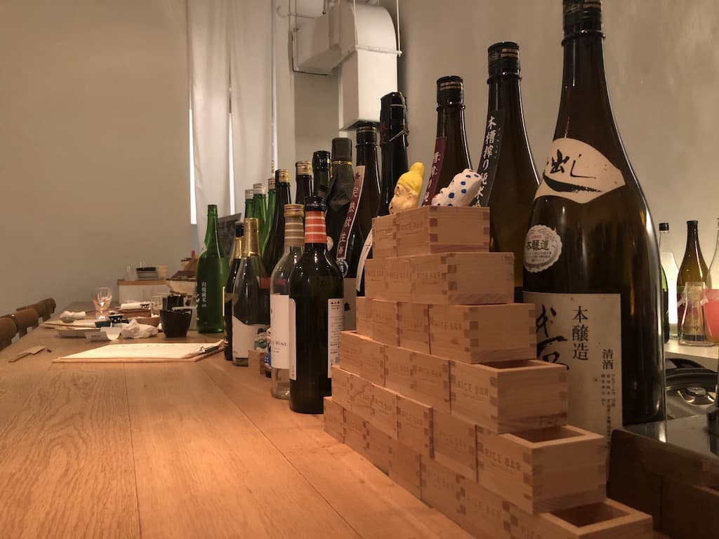 カウンターには素晴らしい日本酒の数々が並べられており、それだけでも一見の価値があります。